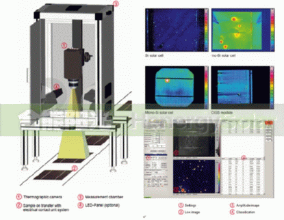 PV-LIT太陽能電池和組件在線檢測系統可對太陽能電池及完整的太陽能組件的各種缺陷進行全自動檢測。PV-LIT可以在線非接觸快速穩定的連續檢測生產過程中的產品,檢測時間小于1秒鐘。另外,客戶也可選擇接觸系統(DLIT)進行單個抽檢及詳細實驗。