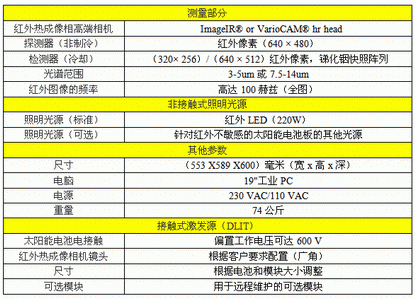技術參數-PV-LIT太陽能電池和組件在線檢測系統:
